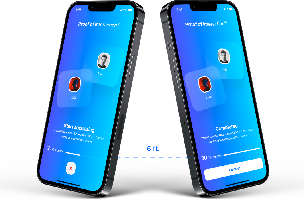 Our patented technology will verify when two users are being social in real life and measures duration. This will help prevent users from gaming the system.
